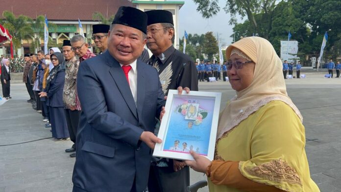 “Ingat teman-teman guru semua, bahwa saudara mengajar bukan hanya memberikan ilmu saja, bukan memberikan angka-angka saja, sebab kalau kita hanya mengajar angka-angka saja maka kita akan kehilangan makna dan nilai. Maka untuk itu mengajar dari hati adalah salah satunya,” ucapnya.