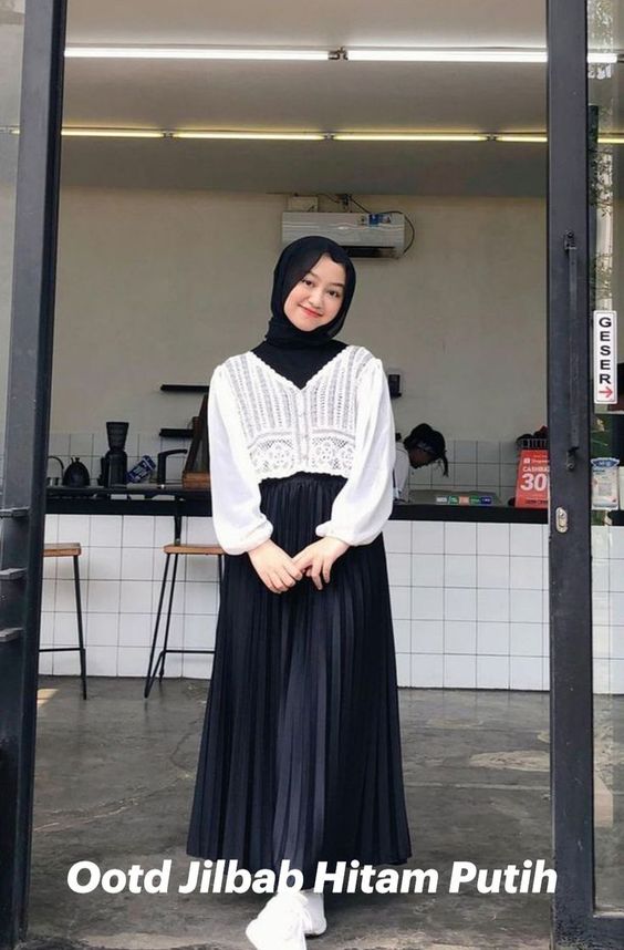 Jilbab warna hitam adalah salah satu yang paling cocok dipadukan dengan baju putih. Warna hitam sebagaimana kita tahu, dia juga warna yang netral.
