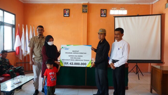 Kepala Kantor Cabang BPJS Ketenagakerjaan Garut, Fajar Akhmadi, mengatakan, bahwa dalam kesempatan ini pihaknya melakukan penyerahan santunan kematian kepada ahli waris Sekretaris Perangkat Desa Limbangan Tengah, atas nama Huki Muldani (24), yang beralamat di Jala Inpres No. 30 Kp. Monggor RT 1 RW 7, Desa Limbangantengah Kecamatan Blubur Limbangan, yang diterima istrinya, Syifa Pangesti (24), berupa uang tunai sebesar 42 juta rupiah.