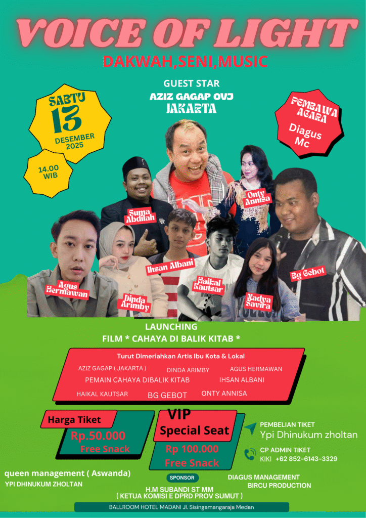MEDAN – Sebuah angin segar dalam khazanah sinema Islami Tanah Air akan segera berhembus. Film bertajuk “Cahaya Di Balik Kitab” hasil.karya kolabirasi antara PT bircu Production.diagus management dan YPi Dhinukum zholtan yang diharapkan mampu menyentuh relung spiritual dan menguatkan keimanan umat, akan menggelar acara launching akbar dan penuh makna.