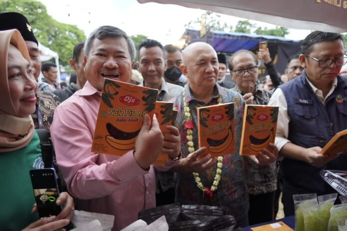 GARUT – Bupati Garut, Rudy Gunawan mendampingi Menteri Koperasi dan Usaha Kecil Menengah (Menkop UKM) Republik Indonesia (RI), Teten Masduki dalam pembukaan acara Limbangan Expo UMKM 2022 yang dilaksanakan di Alun-Alun Balubur Limbangan, Kecamatan Limbangan, Kabupaten Garut, Minggu 9 Oktober 2022.