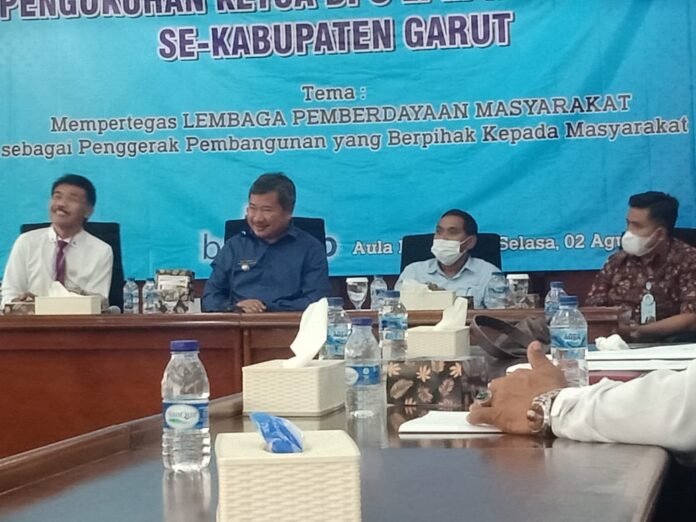 GARUT – Bupati Garut, Rudy Gunawan, sudah mengukuhkan Ketua DPC Lembaga Pemberdayaan Masyarakat (LPM) kecamatan se-Kabupaten Garut, di Aula Kantor Bank BJB Garut, Jalan Ahmad Yani, pada Selasa lalu (2/8/2022).