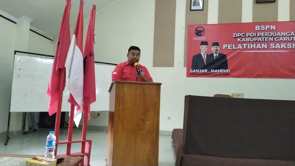 GARUT – DPC PDI Perjuangan Kabupaten Garut menggelar pelatihan saksi, khusus untuk Kecamatan Tarogong Kaler dan Tarogong Kidul, di aula Hotel Augusta, jalan Cipanas, Kecamatan Tarogong Kaler, Rabu 17 Januari 2024.