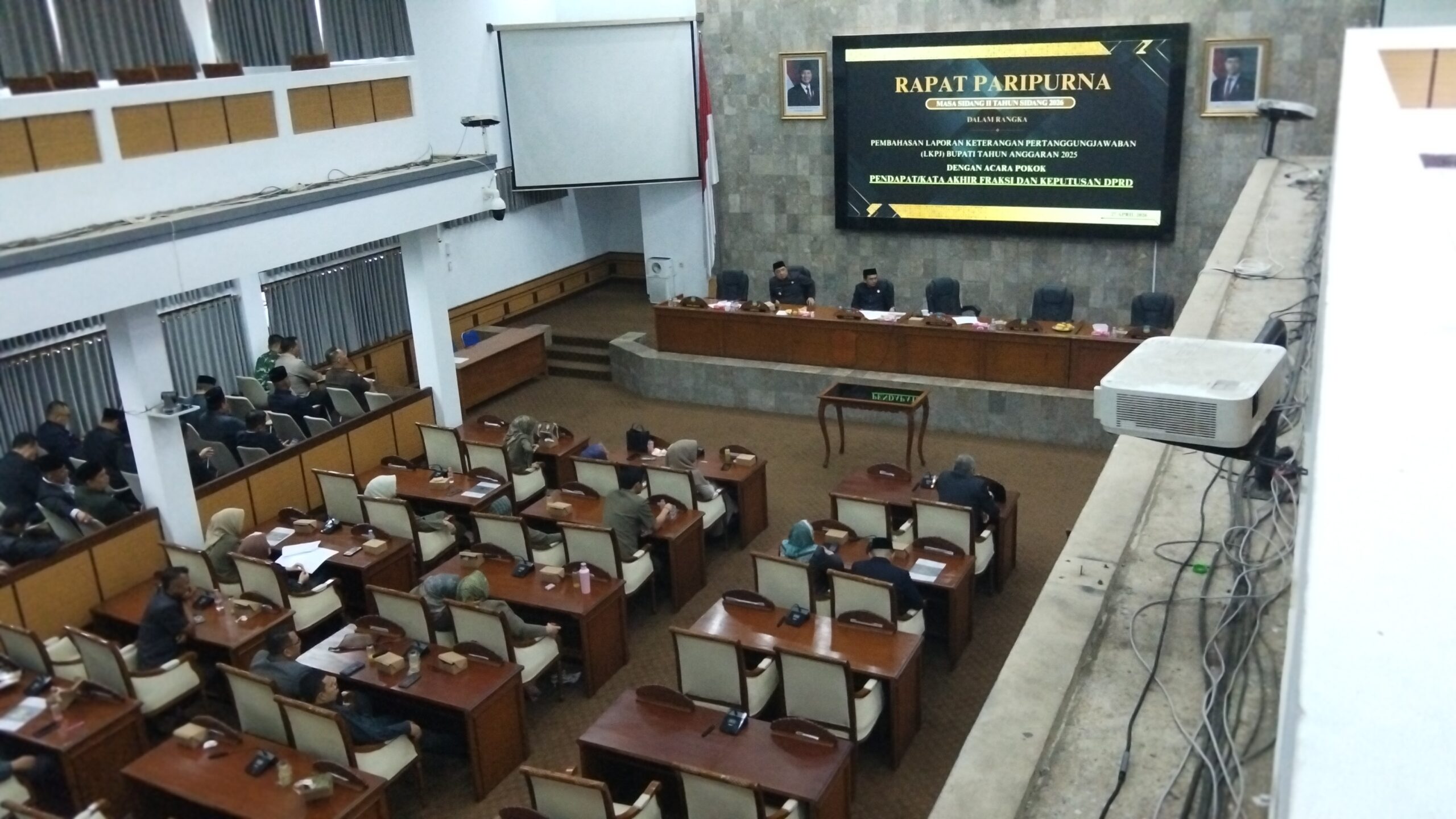 Agenda rapat mencakup penyampaian pendapat akhir fraksi serta pengambilan keputusan DPRD terhadap LKPJ yang telah disampaikan oleh pihak eksekutif. Dalam forum tersebut, masing-masing fraksi menyampaikan pandangan dan evaluasi terhadap kinerja pemerintah daerah selama tahun anggaran 2025.