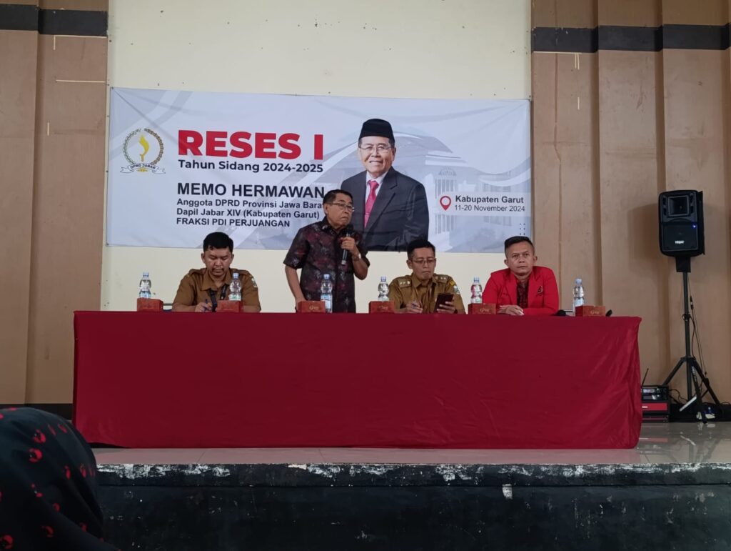 GARUT – Anggota DPRD Provinsi Jawa Barat, Fraksi PDI Perjuangan, H. Memo Hermawan, menggelar reses hari pertamanya di Kabupaten Garut, Senin 11 November 2024 di Gedung Lasminingrat, Kecamatan Garut Kota.