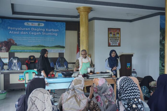 “Momen Idul Adha yang identik dengan pemotongan hewan kurban, tentunya berpeluang meningkatkan gizi masyarakat. Di sisi lain, daging perlu diolah dengan teknik khusus agar bermanfaat pula untuk balita, terutama dalam mengurangi risiko stunting,” ucap Aulia Putri Sandy (Ketua panitia lapangan)