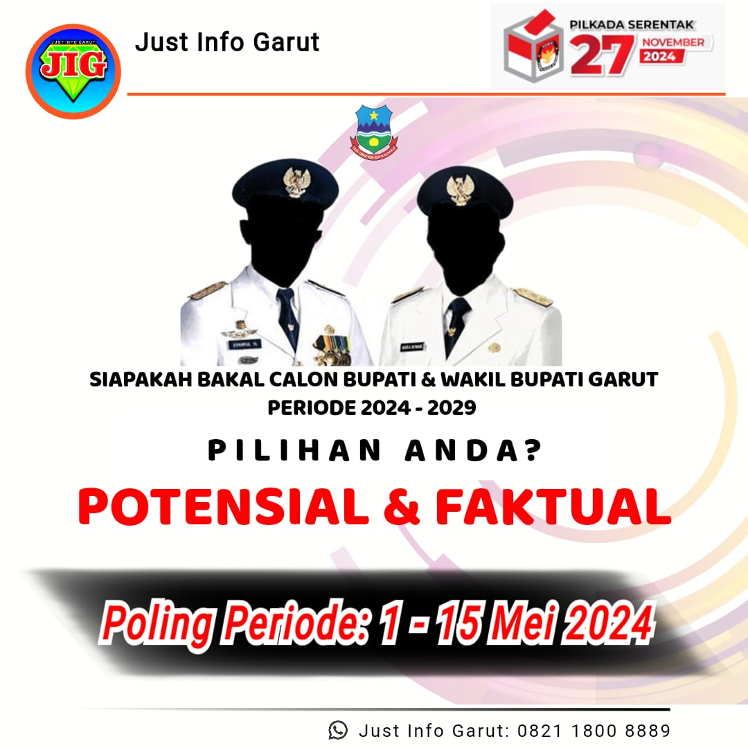 Platform Media Sosial Just Info Garut (JIG), Turut Meramaikan Pilkada dengan Menggelar Polling Bertajuk “Siapakah Bakal Calon Bupati dan Wakil Bupati Garut Periode 2024 – 2029 Pilihan Anda?” Yang Akan Dimulai pada Tanggal 1 Sampai 15 Mei 2024.