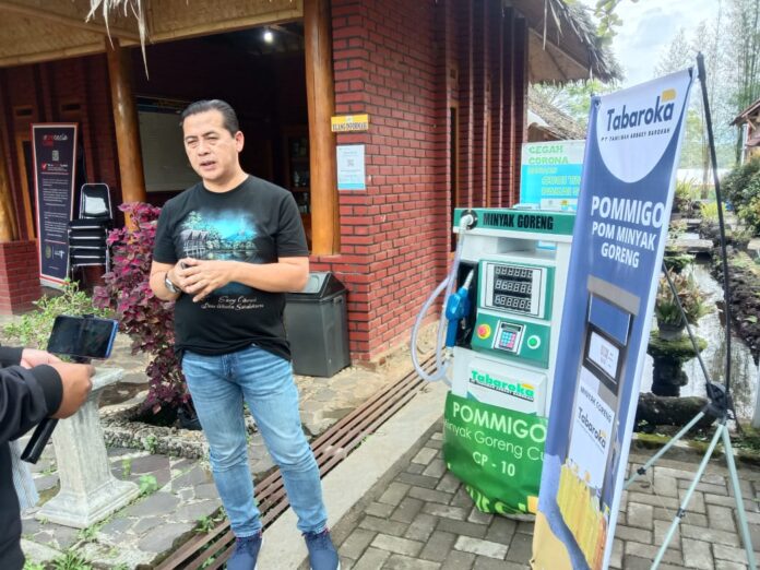 “ Kami bergerak di bidang usaha pengadaan minyak goreng dengan inovasi pom minyak gorengnya. Visi misi kami ini berangkat dari awal kesulitan masyarakat untuk pemerataan kepemilikan minyak goreng masing-masing keluarga,” ujarnya.