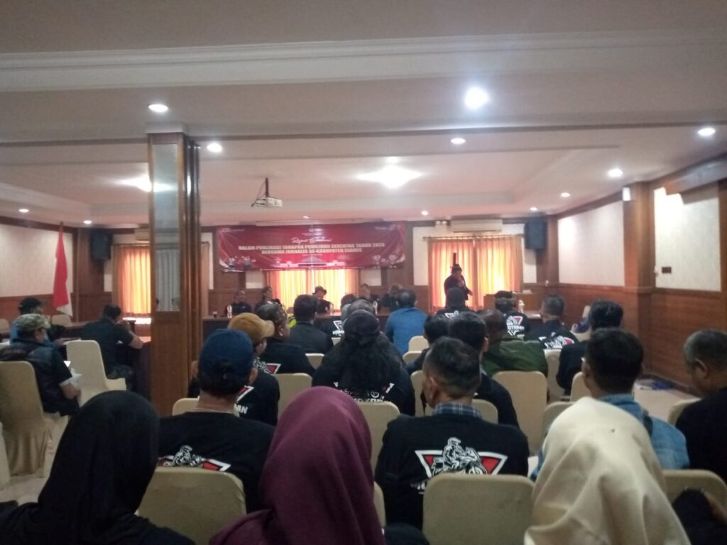Ratusan jurnalis bergembira dan bersuka cita. Ini merupakan kebersamaan terakhir yang mempertemukan ratusan jurnalis dari berbagai media pers.(Hendra Jaenuri)