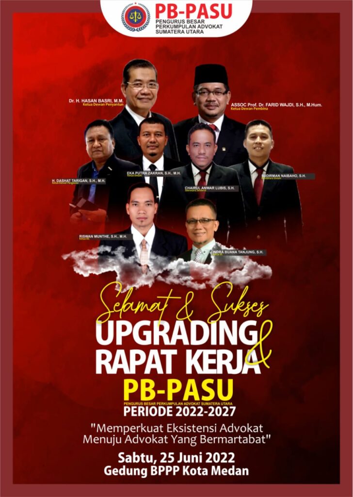 MEDAN – Pengurus Besar Perkumpulan Advokat Sumatera Utara (PB-PASU) akan gelar Up Grading dan Rapat Kerja (Raker) dengan tema ‘Menguatkan Eksistensi Advokat Menuju ‘Advokat Yang Bermartabat’ Sabtu (25/6) bertempat di Gedung Balai Penyuluhan dan Pelatihan Perikanan (BPPP) Medan Jalan Chaidir, Kelurahan Kampung Nelayan, Kecamatan Medan Labuhan.