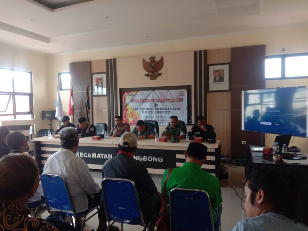 GARUT – Panitia Pengawas Pemilu Kecamatan (Panwaslucam) Bayongbong, Kabupaten Garut, menggelar press release pengawasan logistik dan rapat koordinasi pengawasan logistik pada pemilu tahun 2024 di aula kantor Kecamatan Bayongbong, Selasa 12 Desember 2023.