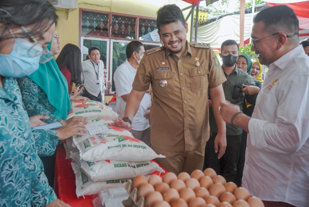 MEDAN – Guna tangani inflasi, Pemkot Medan buka pasar murah di 151 kelurahan, dengan menjual 4 (empat) bahan pokok berupa beras, minyak goreng, Gula dan telur dengan harga di bawah harga pasar.