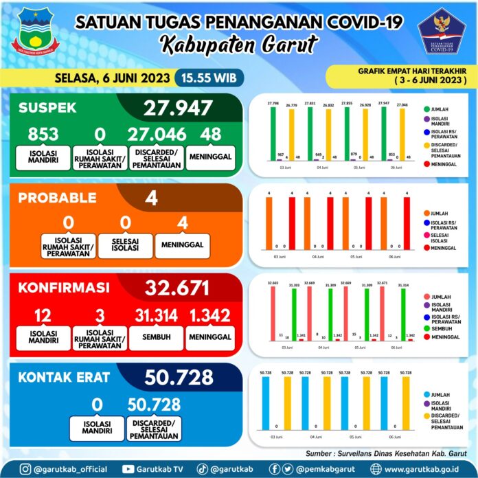 Berdasarkan data dari Sub Devisi Pencegahan Satuan Tugas Penanganan Covid-19 Kabupaten Garut.