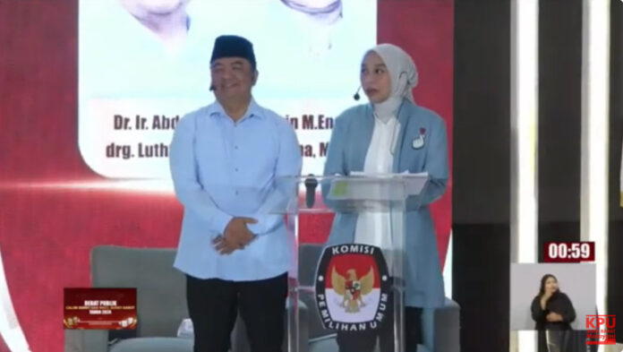 GARUT – Calon Wakil Bupati Garut nomor urut 02, Putri Karlina, dalam debat publik yang digelar KPU Garut Rabu sore (20/11) di Hotel Santika tampak kencang Ketika berdebat dengan paslon 01.