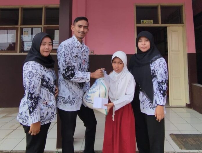 GARUT – SDN 2 Nanjungjaya, Kecamatan Kersamanah, Kabupaten Garut memberikan bantuan kepada murid tidak mampu, Senin 27 November 2023.
