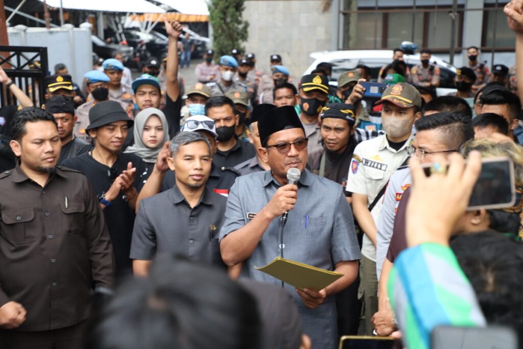 GARUT – dr. Helmi Budiman, Wakil Bupati Garut menghadiri audiensi yang dilakukan Komponen Penyedia jasa transportasi yang tergabung dalam Aliansi Driver Online Garut Bersatu atau ADOGB kemarin di gedung DPRD Garut. Audiensi ini terkait kenaikan harga Bahan Bakar Minyak (BBM) bersubsidi yang telah diputuskan oleh pemerintah pusat naik pada 3 September 2022 lalu.