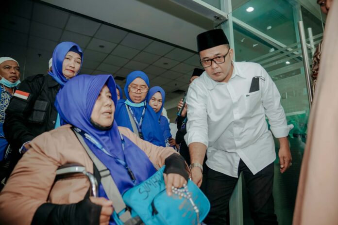 MEDAN – Wakil Walikota Medan, H Aulia Rahman melepas 413 jamaah umroh asal Kelompok Bimbingan Ibadah Haji (KBIH) Ameera Mekkah Travel di Bandara Kuala Namu Medan pada Minggu (7/8).
