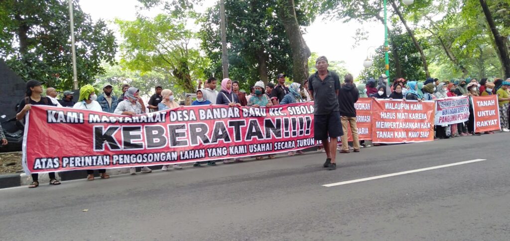 Dalam aksi yang berlangsung di gedung DPRD Sumut, massa membawa spanduk yang bertuliskan ‘kami masyarakat desa bandar baru keberatan atas perintah pengosongan lahan yang kami usahai secara turun menurun’, walaupun kami mempertahankan hak kami, kami siap’, ‘Tanah Untuk Rakyat’. ‘Gubernur Edy Rahmayadi bertindak seperti panglima perang’, ‘wujudkan repormasi agraria’.