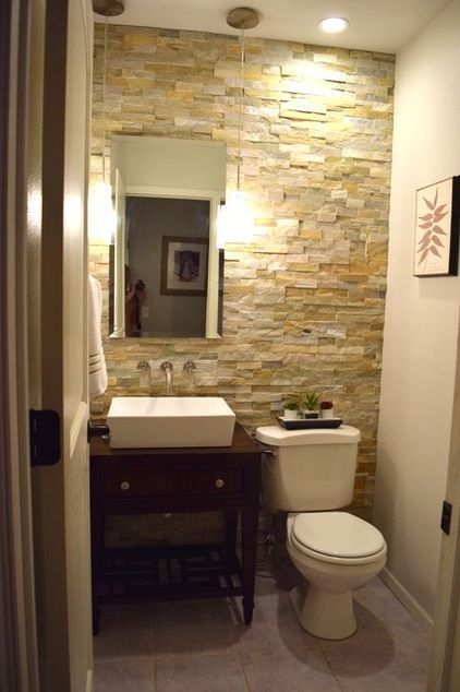 Untuk memperkuat kesan alam itu, kita bisa mengombinasikan material dari bebatuan alami.