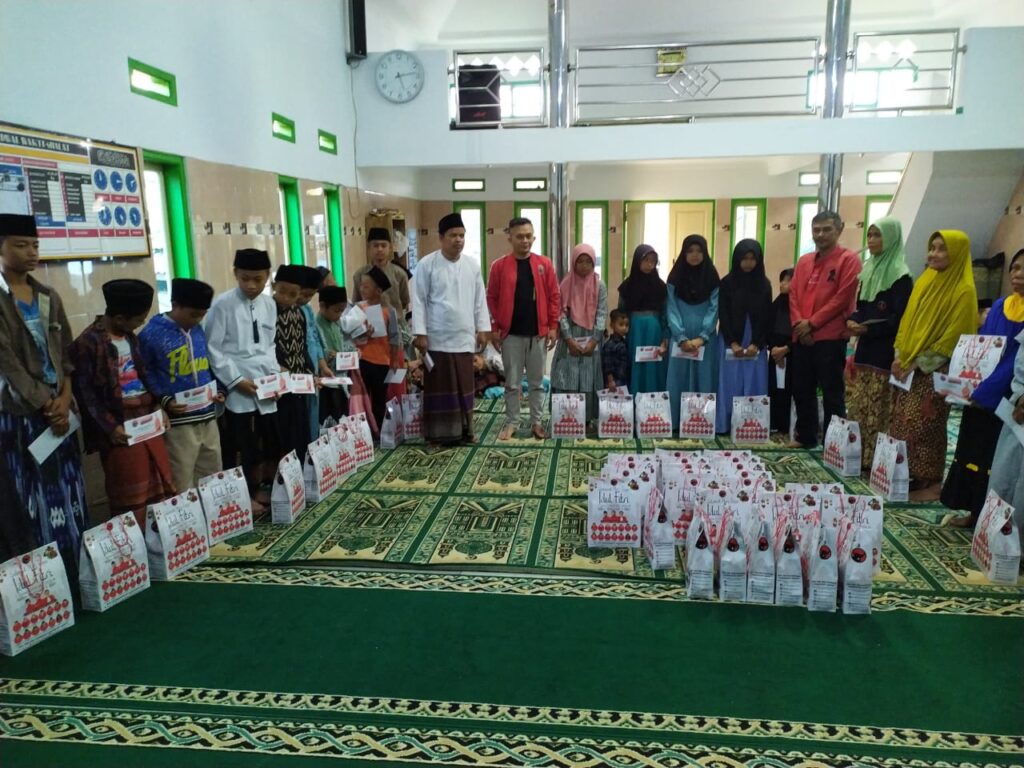 50 orang anak yatim dan janda tua yang hadir di madrasah Fauzul Huda diberikan santunan uang dan bingkisan sembako.