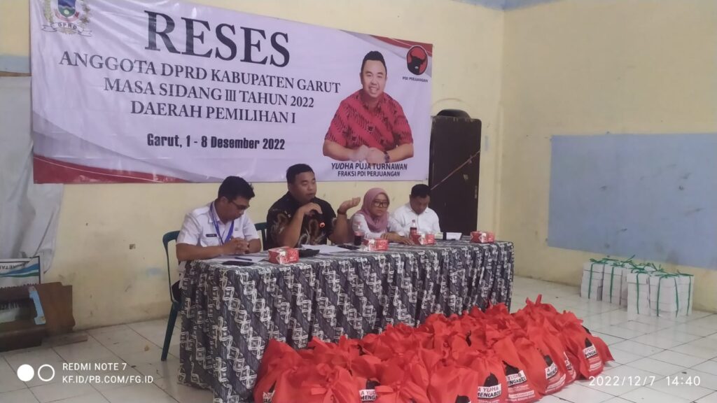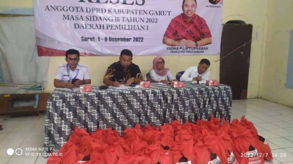 GARUT – Yudha Puja Turnawan legislator Garut dari Fraksi PDI Perjuangan melaksanakan reses di Kelurahan Pakuwon, Kecamatan Garut Kota, Rabu 7 Desember 2022.