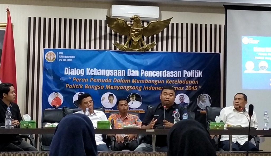 GARUT – Anggota DPRD Garut Fraksi PDI Perjuangan, Yudha Puja Turnawan Menjadi narasumber dalam acara dialog kebangsaan dan Pencerdasan Politik yang dilaksanakan di ruang rapat Setda kabupaten Garut Sabtu 25 November 2023.